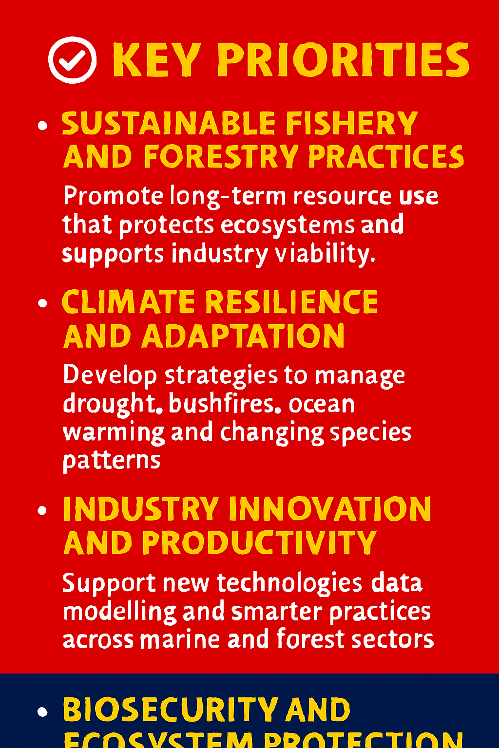 Supports long-term industry viability Builds resilience and innovation across fisheries, aquaculture, and forestry sectors.